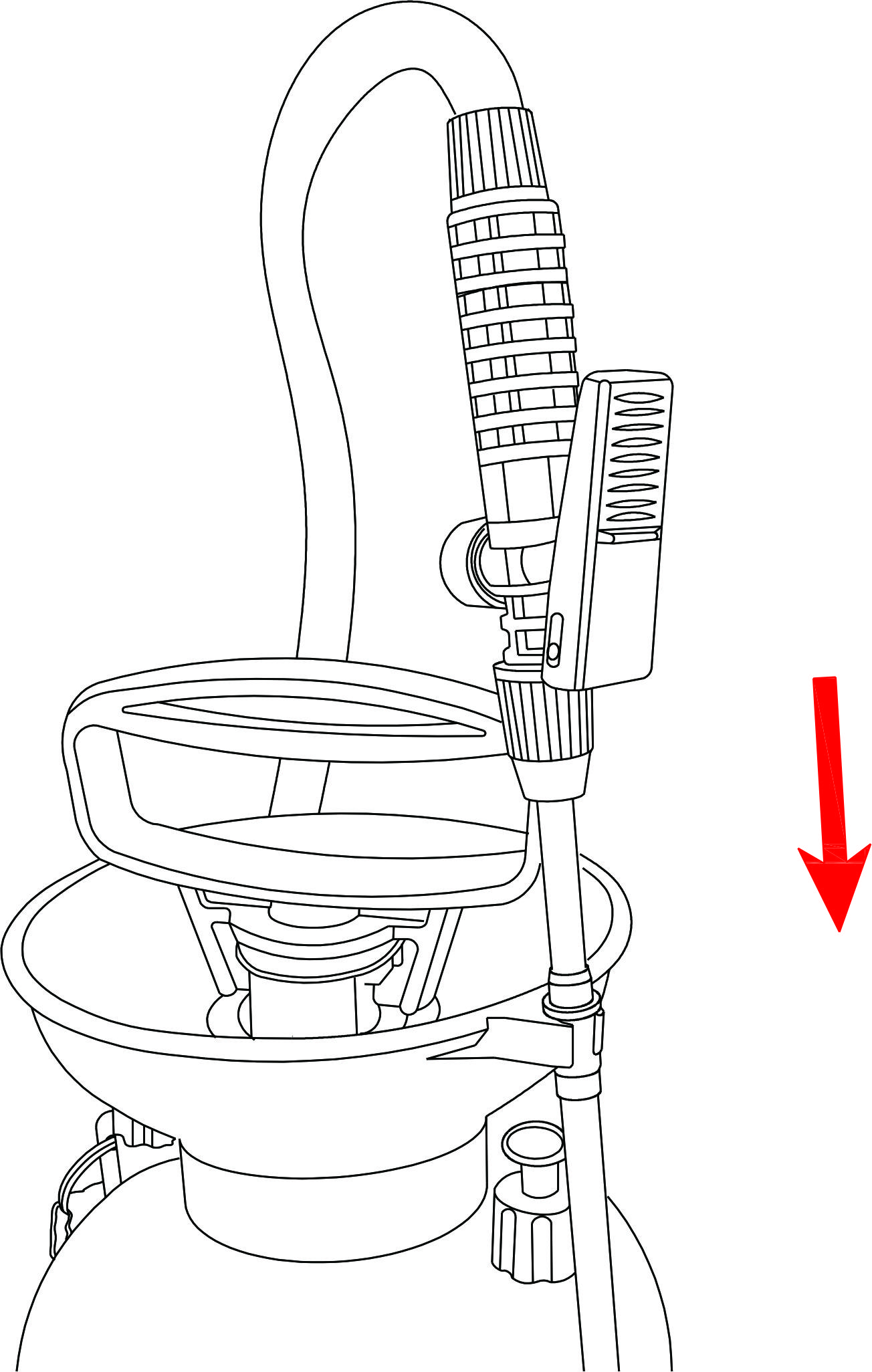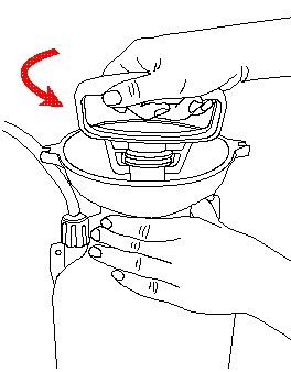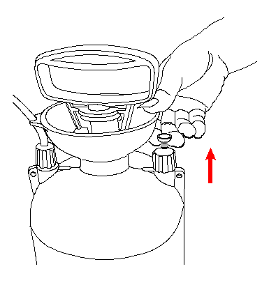 Observação: A pressão residual será mantida no tanque mesmo após o término da pulverização devido à válvula reguladora. Libere a pressão antes de remover a bomba seguindo as instruções (conforme fornecidas na válvula de alívio)