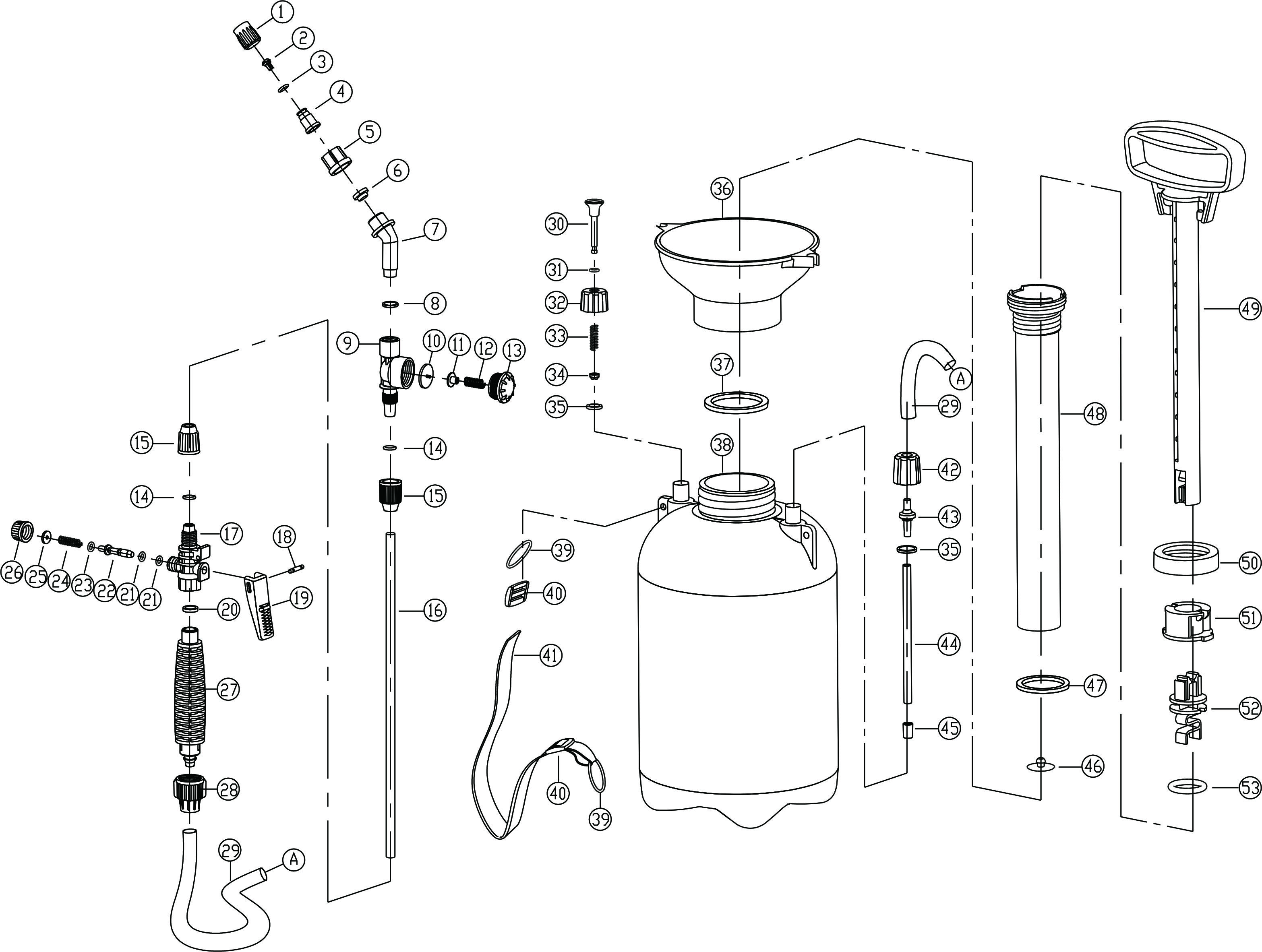 15 | tampa da lança do pulverizador | 2 | 42 | Tampa da mangueira II | 1 |